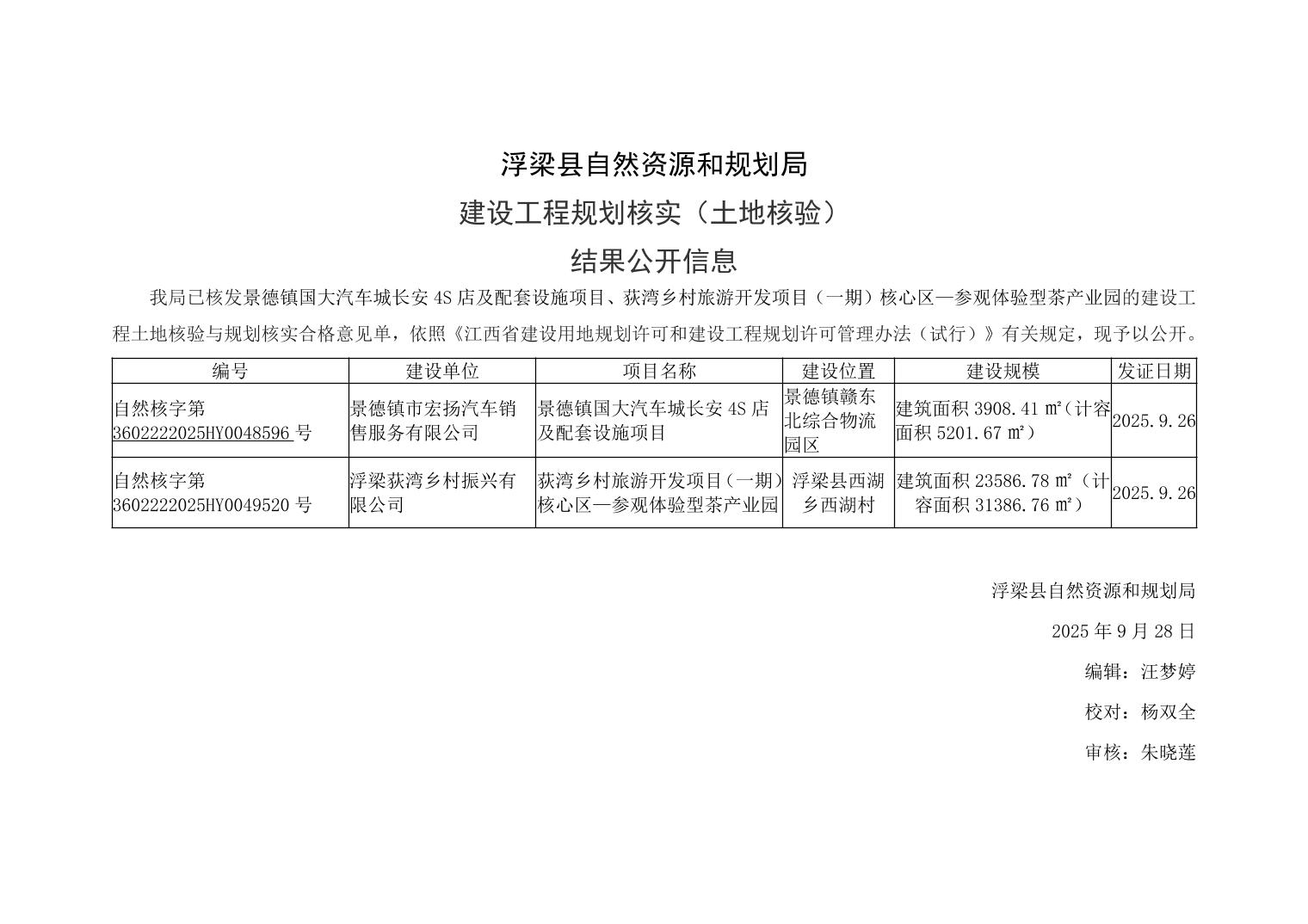 浮梁县自然资源和规划局 建设工程规划核实(土地核验) 结果公开信息