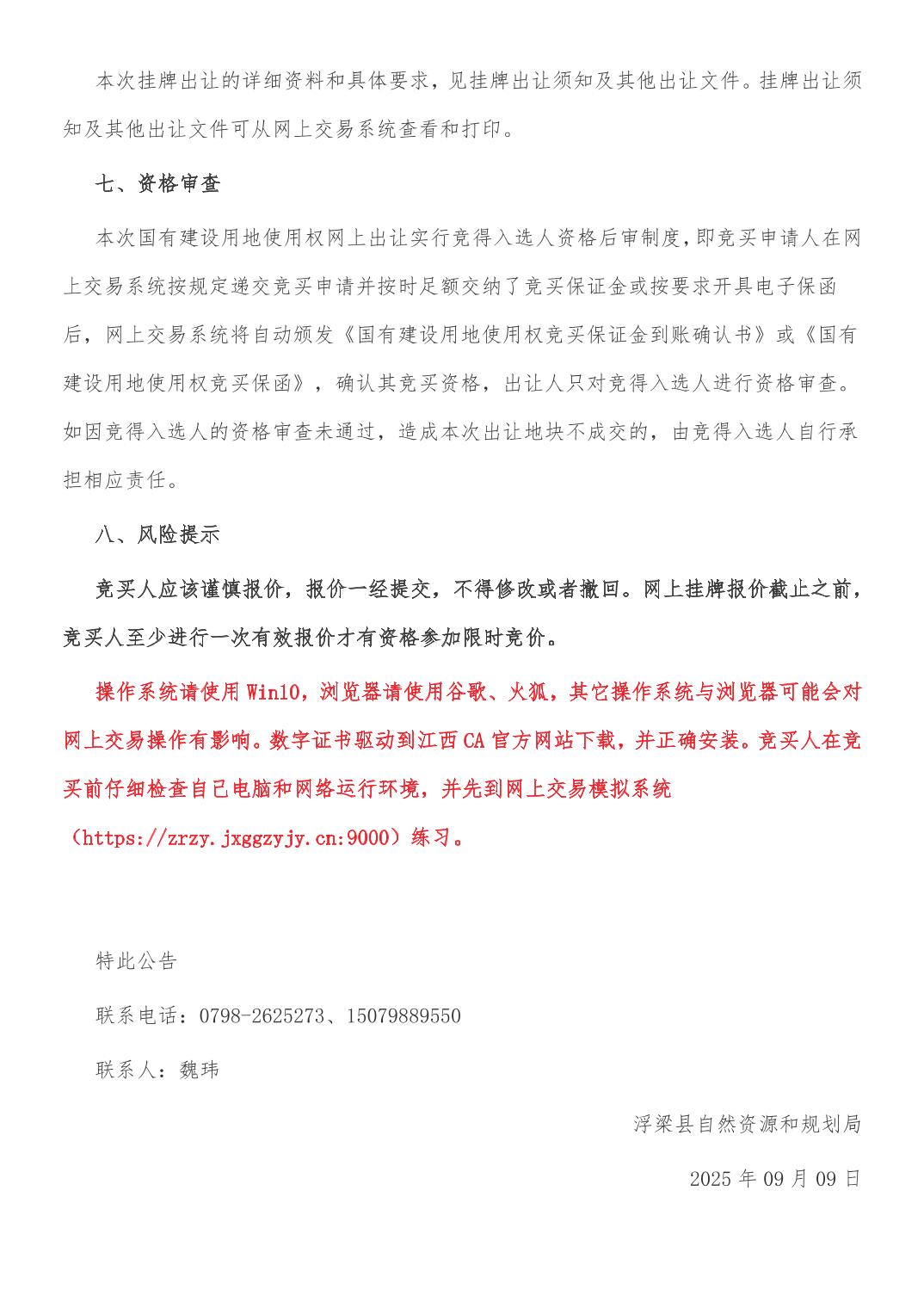 浮梁县国有建设用地使用权出让网上挂牌公告