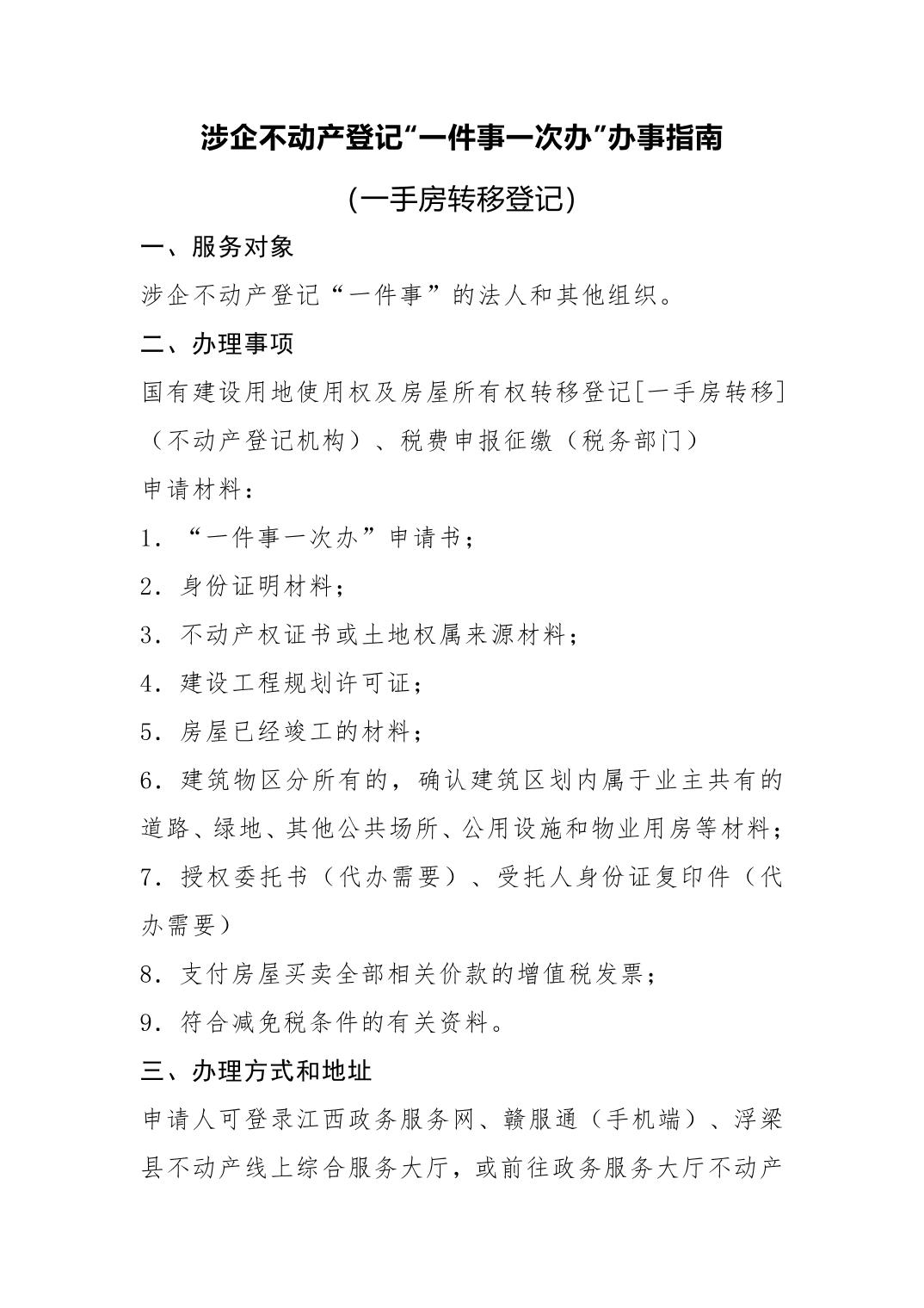 涉企不动产一手房转移登记