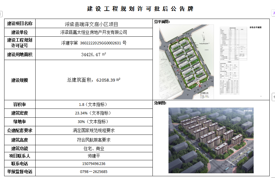 浮梁县瑞泽文庭小区项目建设工程规划许可批后公布