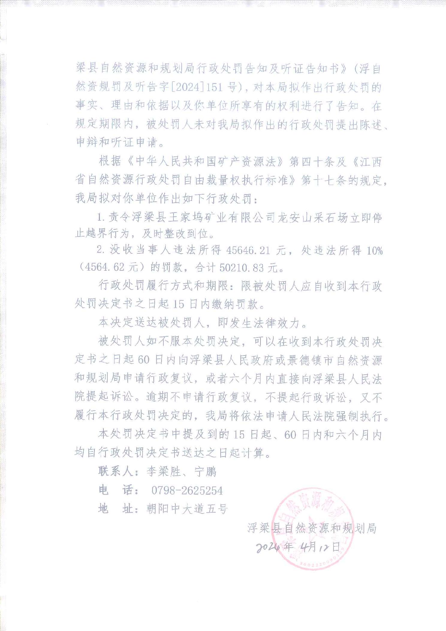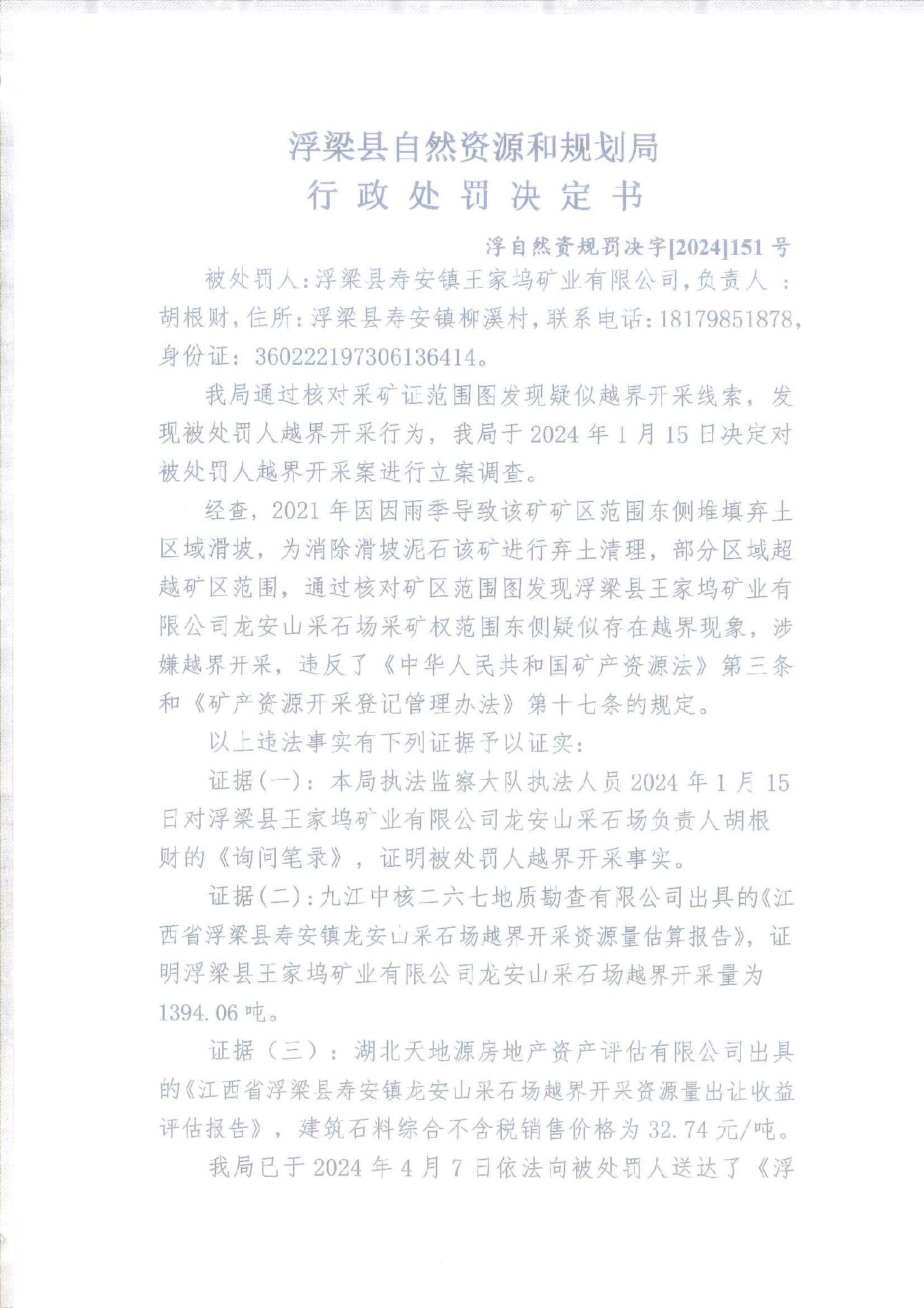 浮梁县自然资源和规划局行政处罚决定书 浮自然资规罚决字【2024】151号