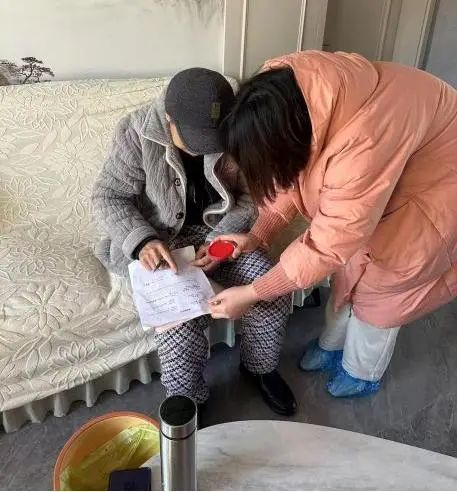 在曹某家中,工作人员详细核对相关人员身份信息,在其表达自愿将房产过户后,细致的帮助曹某完成申请,严格按照相关流程办理了登记业务的受理。让群众在家里就能安心申请办理不动产转移登记手续。