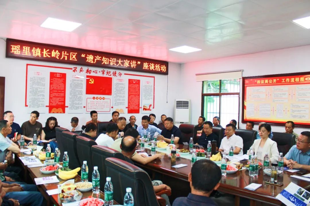 为深入贯彻落实文化遗产保护理念,进一步挖掘与守护瑶里镇弥足珍贵的文化遗产,切实增强当地居民对遗产保护的责任感与使命感,6月1日,瑶里镇“遗产知识大家讲”座谈活动走进长岭片区。市高岭瑶里风景名胜区管委会副主任潘长发,县文旅局党组成员、全域旅游发展中心主任冯如勤,镇党委书记江佳恒,镇党委副书记、镇长吴俊君,瑶里居委会和长明村村小组长、村民代表等参加活动。