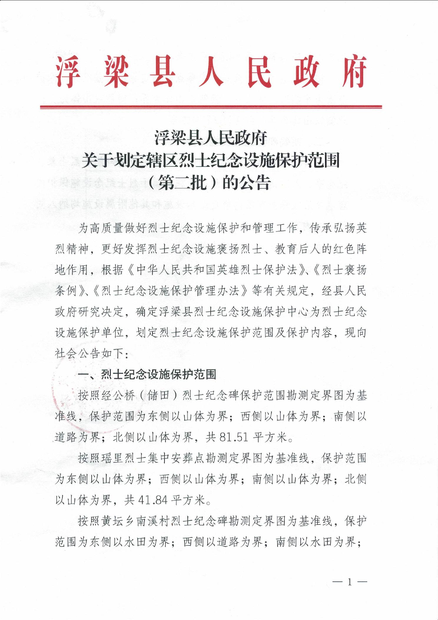 浮梁县人民政府关于划定辖区烈士纪念设施保护范围(第二批)的公告