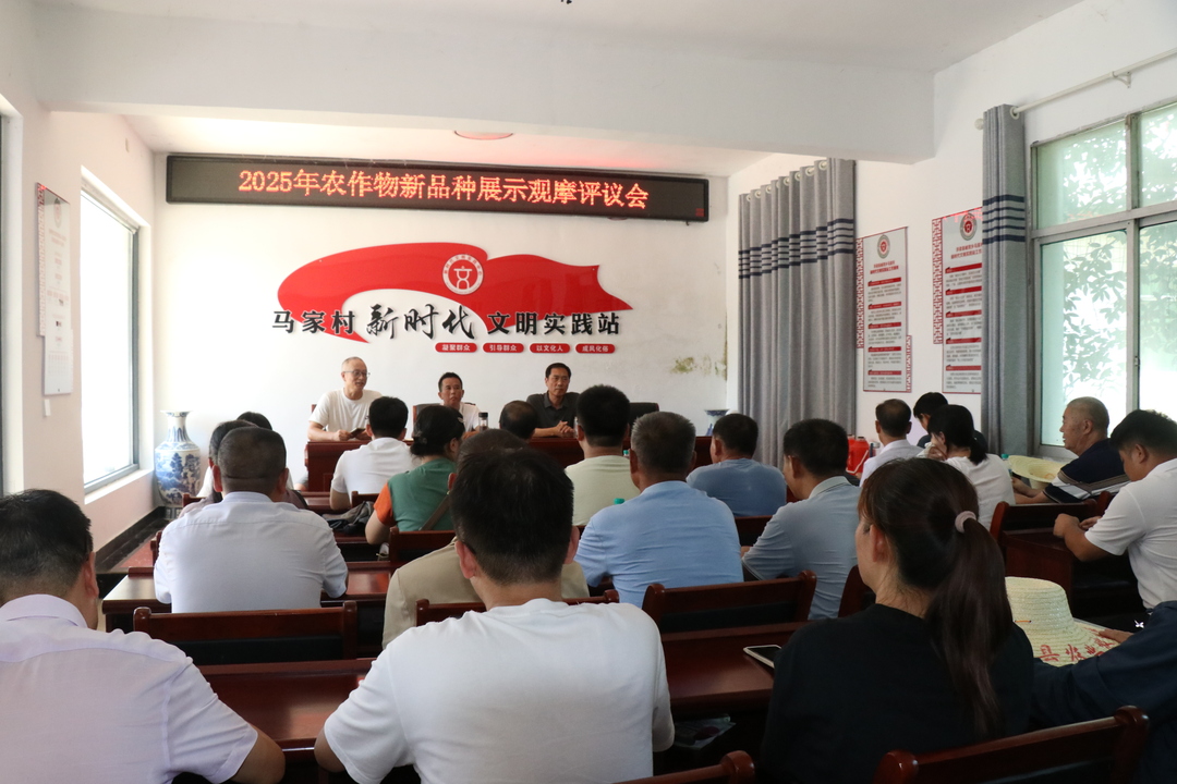 观摩结束,在马家村新时代文明实践站召开了农作物新品种评议会,就展示品种的丰产性、抗性、适应性、熟期等特征特性进行了评议和讨论。种子经销商也通过评议进一步了解各品种特性,明确了后续推广方向。