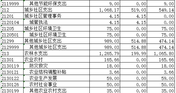 (九)农林水支出年初预算数为209.99万元,决算数为1265.79万元,完成年初预算的602.8%。