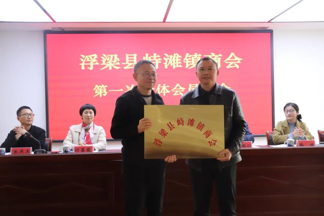徐平宣读县工商联《关于同意成立浮梁县峙滩镇商会的批复》。