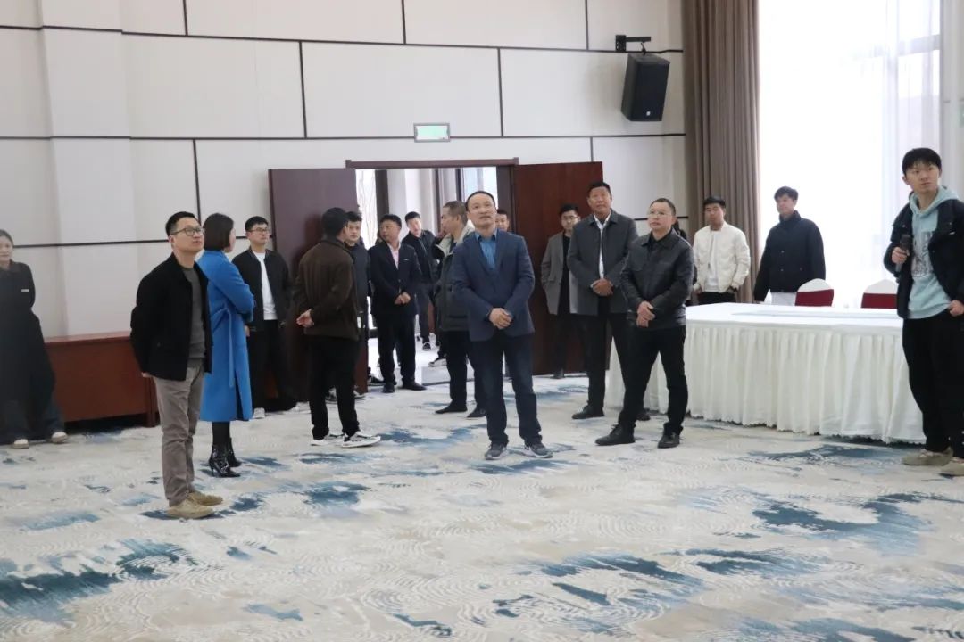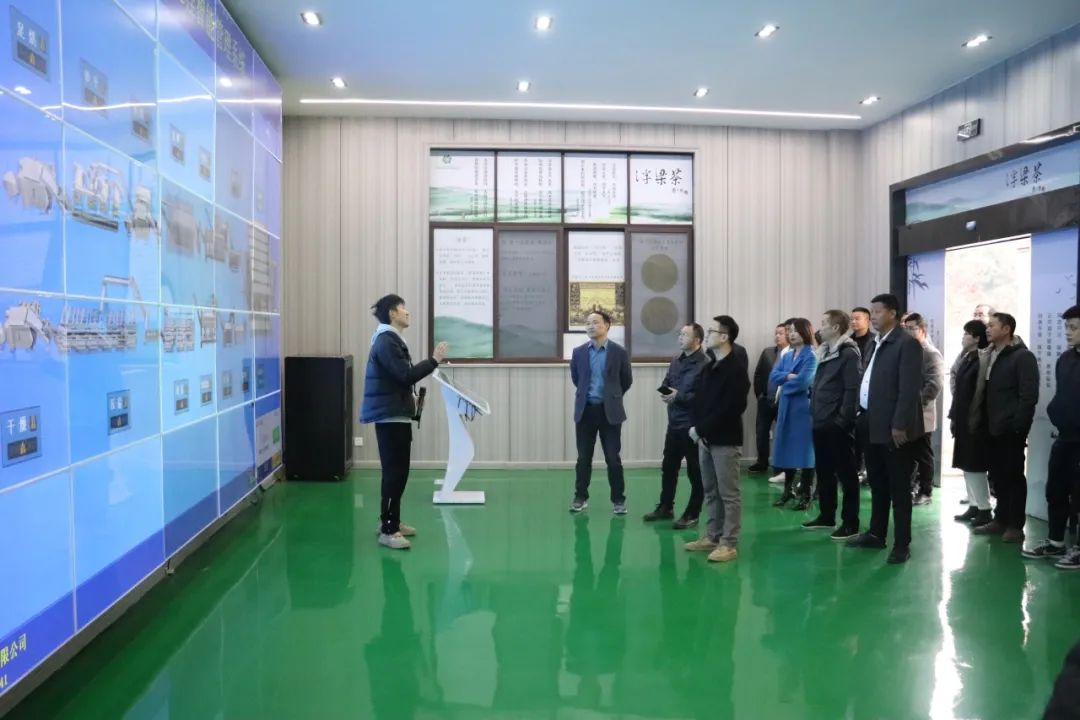 会前,浮梁县峙滩镇商会会员参观美丽乡村梅湖、浮梁县流口茶产业基地及玉京酒店。