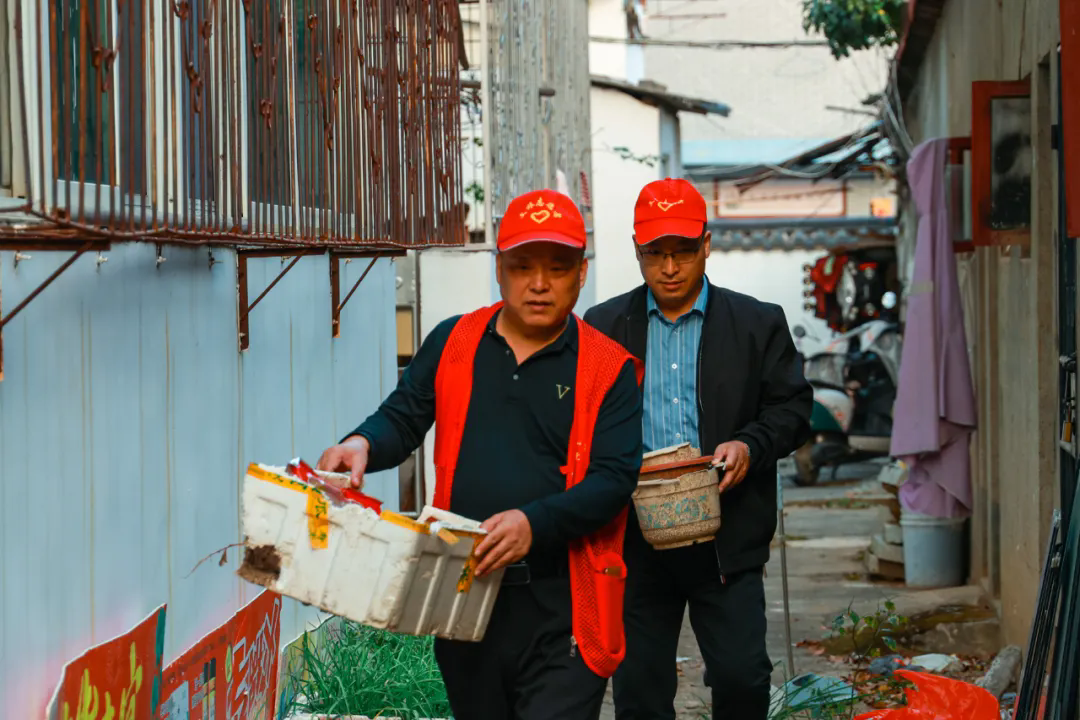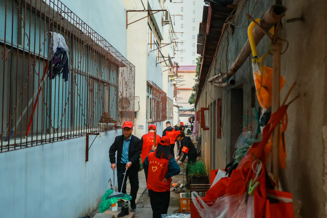 志愿者戴着红帽子、穿着红马甲,拿着扫帚、铁锹等劳动工具,从“细”处入手、往“实”处用力,对1栋、2栋、3栋楼前的院子,特别是2栋楼后的过道进行了全面的清扫,确保整治一处、干净一处、提升一处,真正做到房前屋后清洁干净,小区“颜值”大提升。同时,志愿者们向居民群众进行宣传,以实干行为引导小区居民积极参与环境整治行动,提升群众环境保护意识。