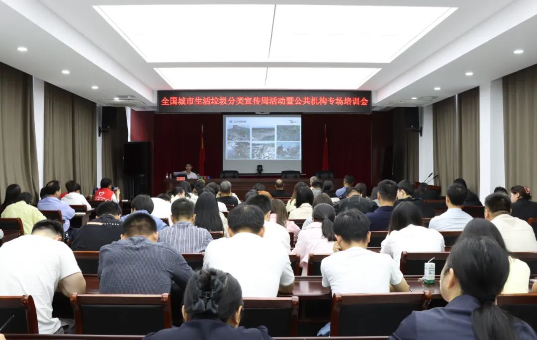 为切实提高各公共机构垃圾分类管理的专业化、规范化、精细化水平,推动我县生活垃圾分类工作不断提质增效,5月25日上午,县城乡生活垃圾分类工作领导小组办公室举办全国城市生活垃圾分类宣传周活动暨公共机构专场培训会。