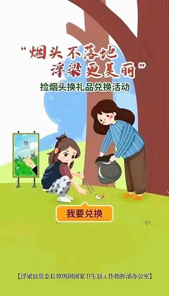 小小烟头,给县城“脸上”点满了丑陋的“雀斑”,成为县城市容环境的一大“公害”。为有效推进全国爱国卫生运动,深入开展环境卫生精细化大整治工作,鼓励倡导广大居民朋友们积极开展“烟头不落地,城市更美丽”捡拾整治工作,特开展“捡烟头”兑换礼品活动。具体倡议如下: