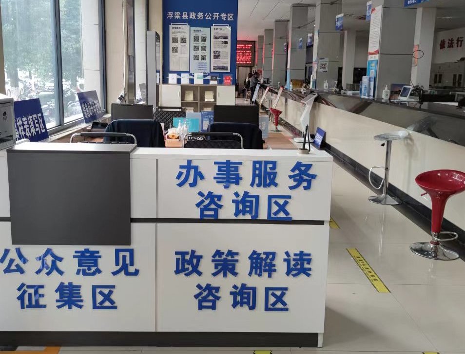 一是阵地融合,打造线下专区。浮梁县本级和臧湾乡、三龙镇通过阵地资源整合和合理优化布局,依托行政服务中心或便民服务中心标准化建设包含信息公开申请区、便民休息等候区、政府信息查询区、办事样表填写区、公众意见征集区等功能区的政务公开专区,并编制了浮梁县企业、个人办事“一本通”、便民服务手册、政府工作报告汇编、县政府公报等信息集中展示。