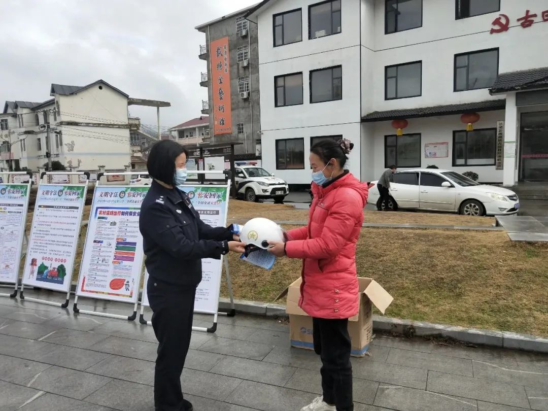 春运期间群众出行安全也牵动着车管所工作人员的心。通过摆放讲解宣传展板、散发宣传单等多种形式,民辅警“面对面”向村民进行交通安全宣传教育,强调驾乘摩托车要佩戴好安全头盔,并向前来学习交通安全法规的村民发放了安全头盔。
