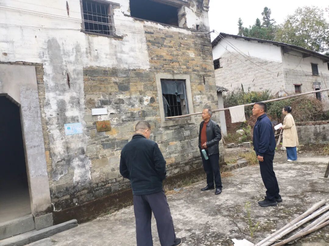 11月3日,镇司法所所长祝亚军一行至港口村开展脱贫户自建房安全隐患排查工作。