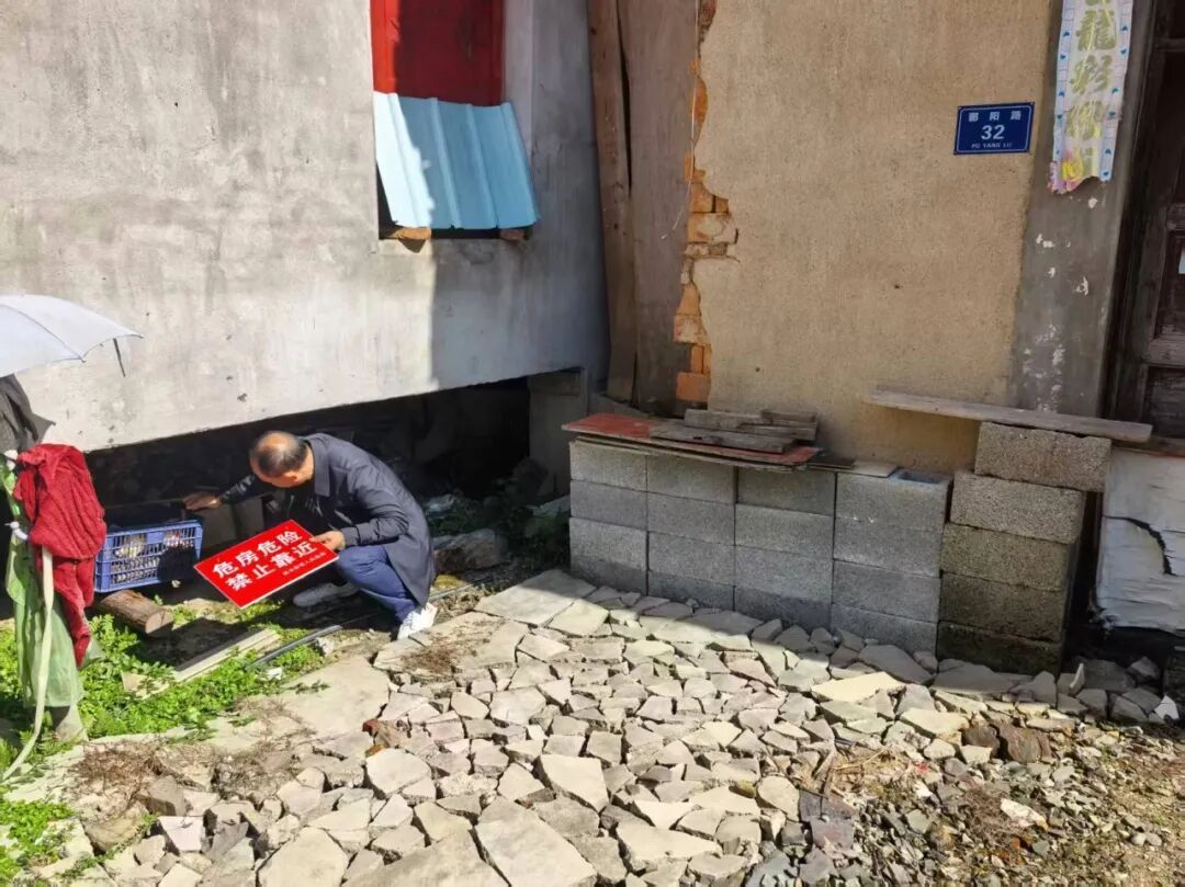 11月14日,镇经济发展办(住建)至经公桥村巡查危房管控情况,并重新固定人为拆除的警戒线和警示牌。