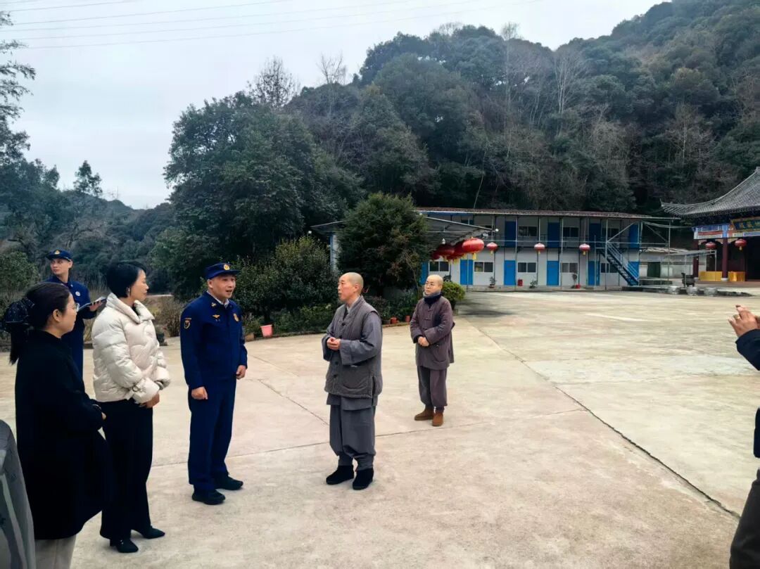 1月19日,县委统战部常务副部长计蔷薇、县消防大队大队长陈坚一行到祝圣寺进行消防安全督导。镇党委副书记、政法委员秦晓琳陪同。