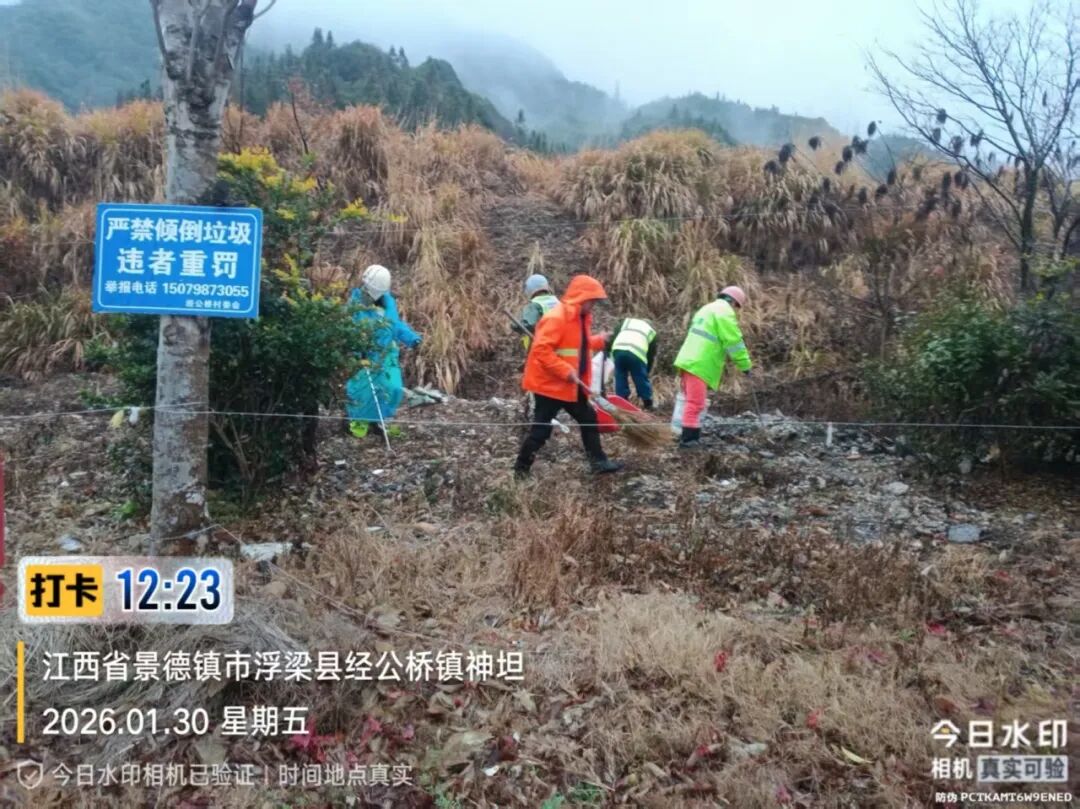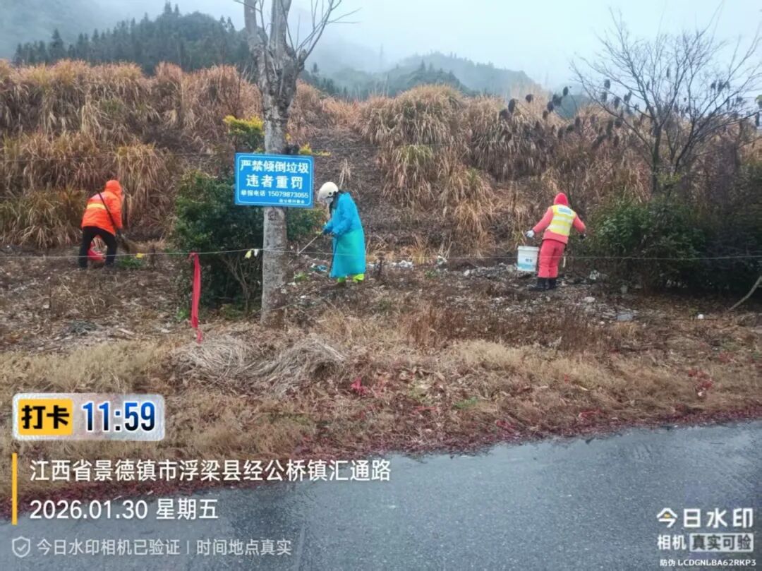 1月30日,镇综合行政执法队(城管)组织玉禾田保洁员进行环境卫生整治。