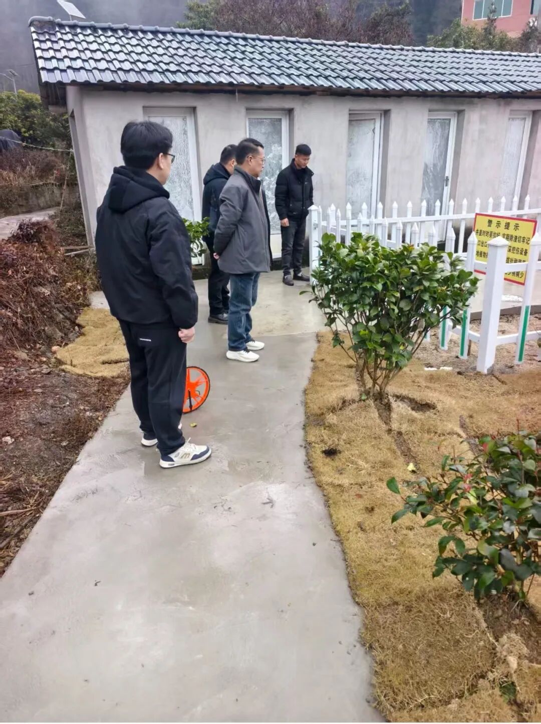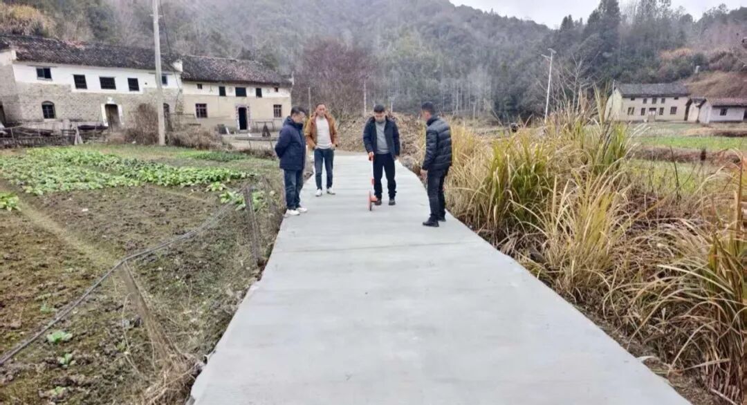 1月27日,镇经济发展办、镇便民服务中心至源港村横坑组验收一事一议路面硬化工程。