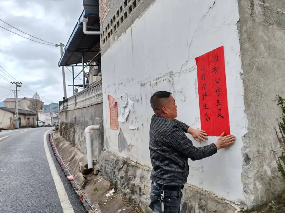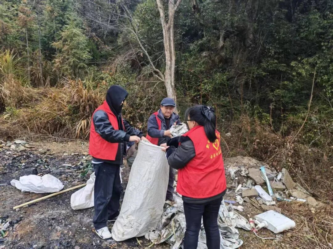 1月30日,各村(社区)开展垃圾清理及上户发放保护野生动物宣传单。