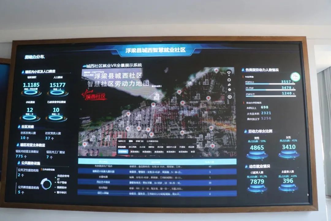 走进城西社区党群服务中心,便民服务站屏幕上正播放着城西社区劳动力地图,清晰展示着社区内劳动力分布情况和企业用工需求等信息,这种信息可视、数据公开、形式新颖的服务形式吸引了社区群众前来了解。