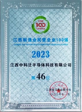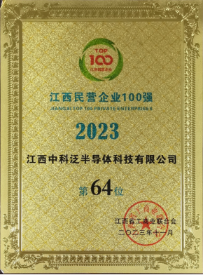 11月3日,2023江西民营企业100强发布会在江西南昌召开。江西中科泛半导体科技有限公司入选“江西民营企业100强”榜单、“江西制造业民营企业100强”榜单,分别位列第64位、第46位。