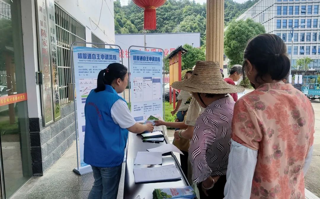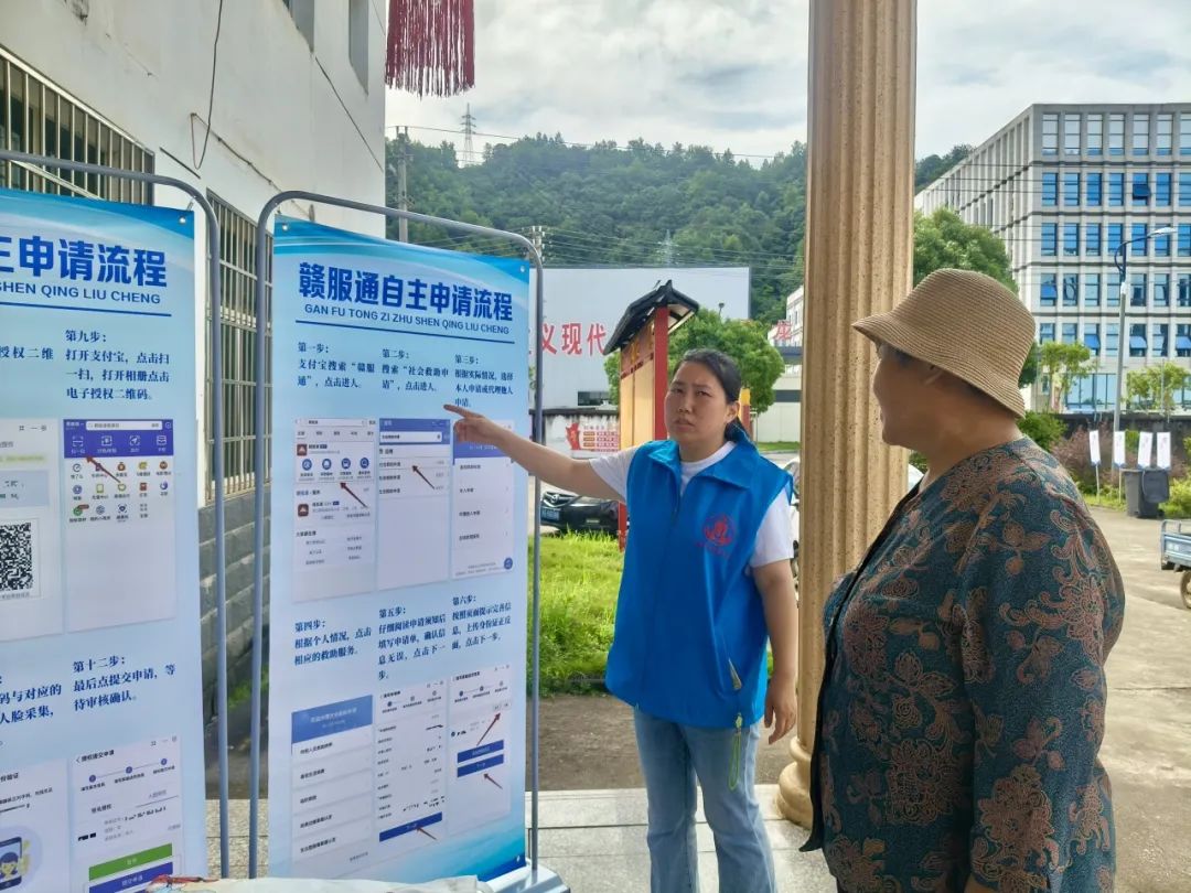 在“赣服通操作指导区”,工作人员演示线上申请流程,重点标注材料填报要点,在一定程度上纠正了部分村民“失业即能申请救助”的认知偏差,实现了政策解读与实操指导的融合。