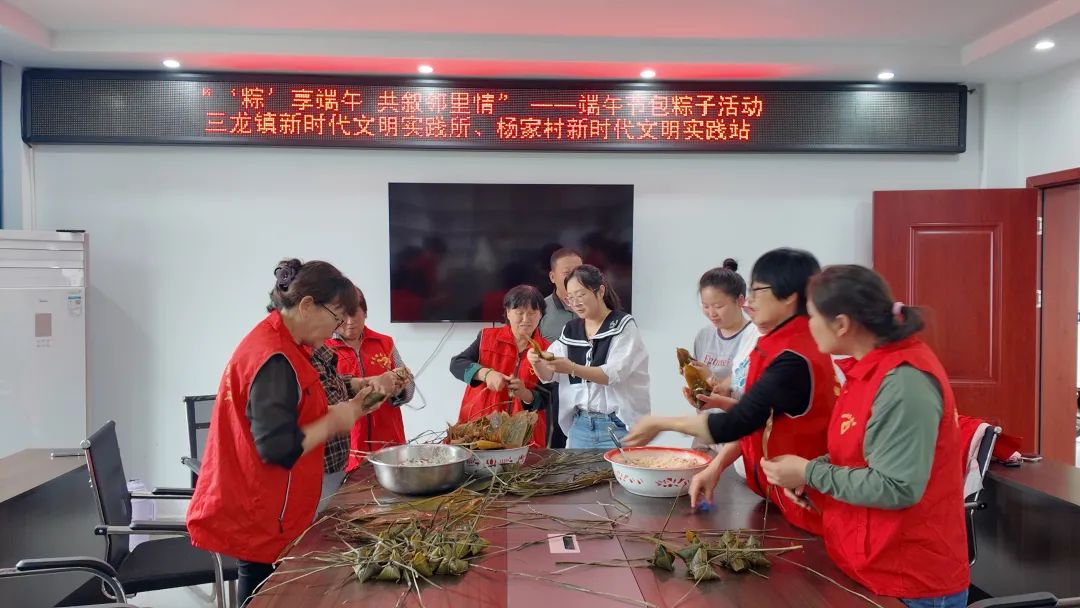 端午临仲夏,时清日复长。为弘扬中华优秀传统文化,丰富村民精神文化生活,营造浓厚的节日氛围,5月28日,三龙镇新时代文明实践所联合杨家村新时代文明实践站开展“‘粽’享端午,共叙邻里情”主题包粽子活动,村民们欢聚一堂,共同感受传统节日的魅力,传递邻里温情。