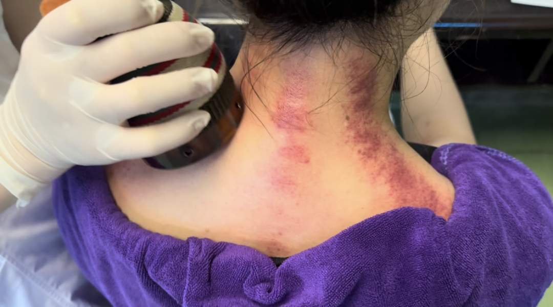 3、温通刮痧后皮肤会出现红、紫、黑斑的现象,称为“出痧”,这是一种正常反应。一般2-6天皮肤上痧会消失。