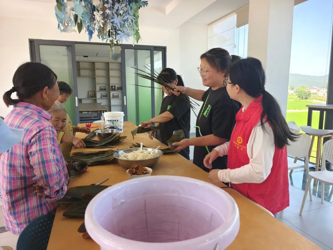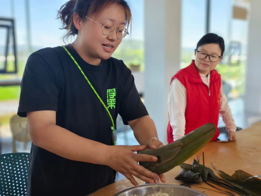 随着活动开始,大家围在一起,折粽叶、装糯米、放馅料、扎粽绳……自己动手制作粽子,感受浓厚的喜悦氛围,一片片清香的粽叶、一粒粒晶莹的糯米,在一双双巧手下,不一会就变成了一个又一个鲜绿、有棱角的粽子。现场欢声笑语不断,气氛和谐融洽,洋溢着浓浓的端午味道。