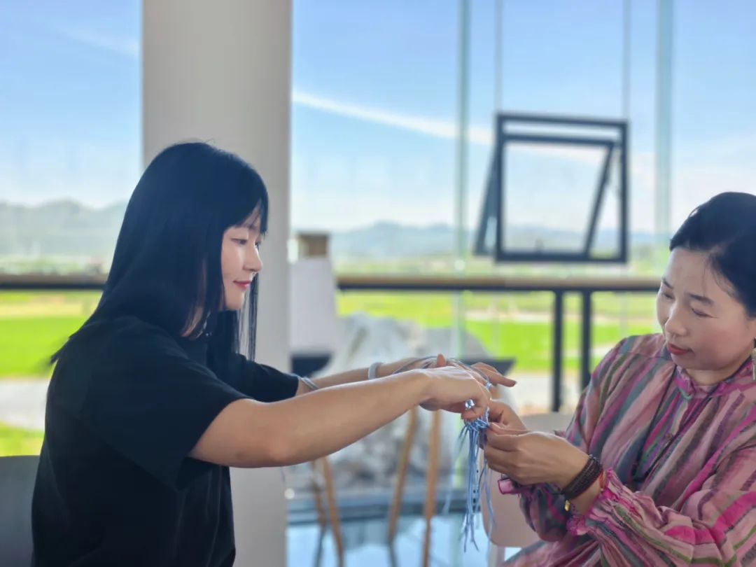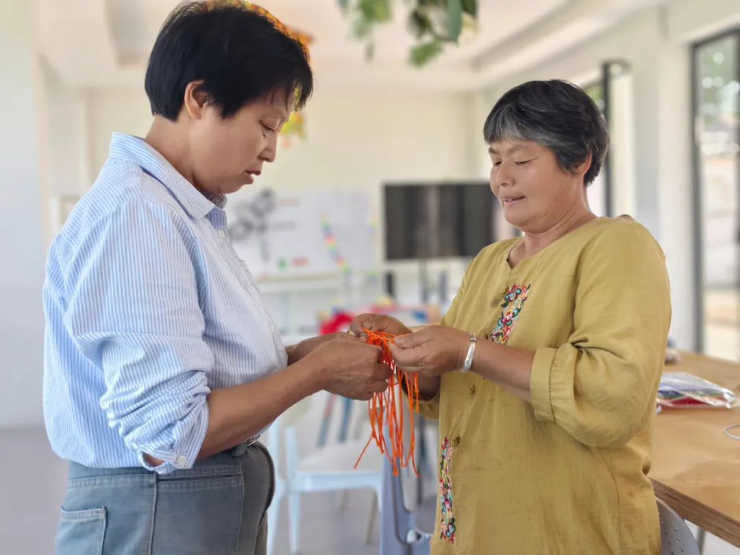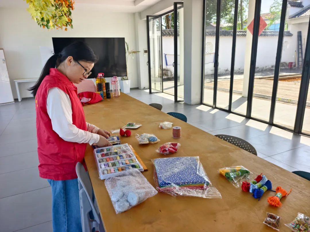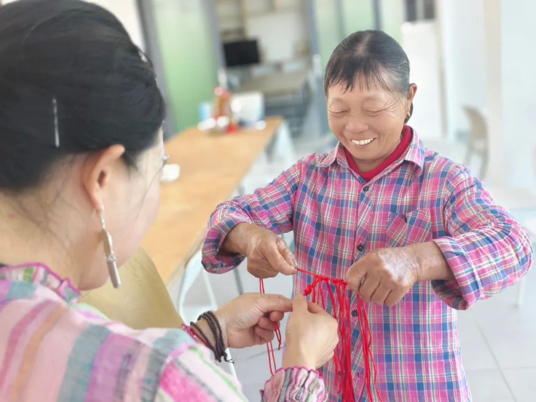 包完粽子以后,大家又聚在一起为家里的小朋友编制装端午红鸡蛋的蛋袋,让孩子们从小感受端午的传统文化。