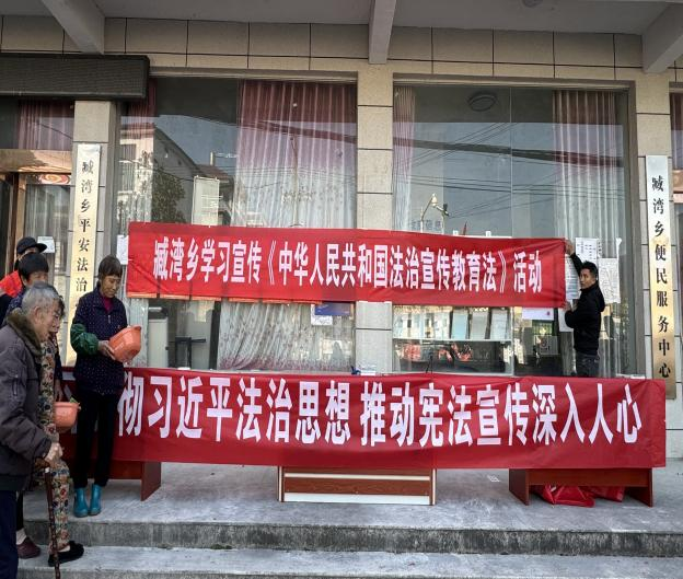 12月4日,臧湾司法所联合乡综治中心、乡新时代文明实践所、乡妇联开展以“学习宣传贯彻习近平法治思想 推动宪法深入人心”为主题的法治宣传活动。