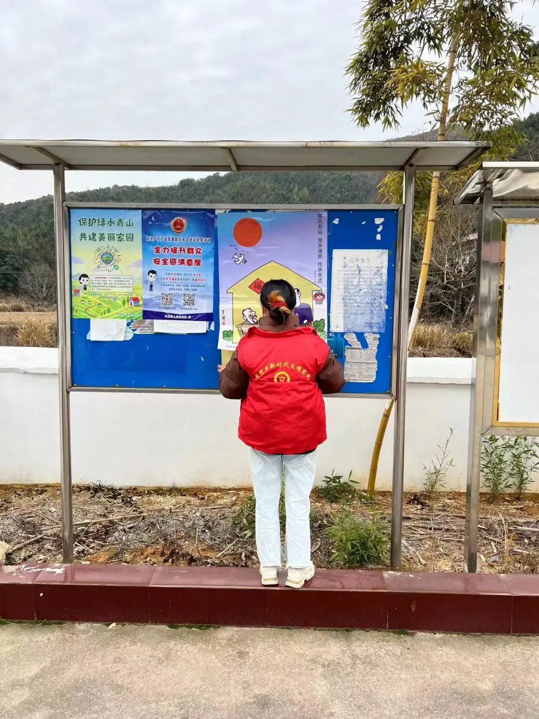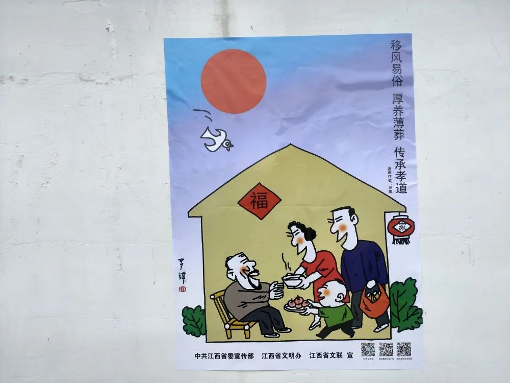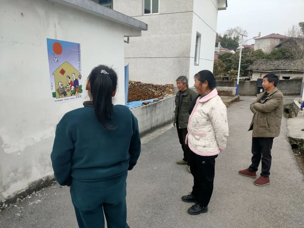 活动中,志愿者在辖区张贴移风易俗主题漫画引导大家养成文明健康、绿色环保的生活方式,鼓励村民杜绝铺张浪费,高价彩礼、喜事简办,树立节约的思想观念。