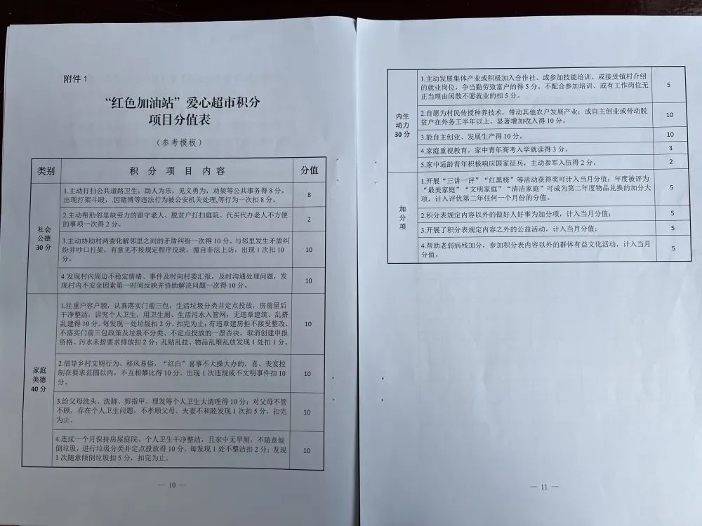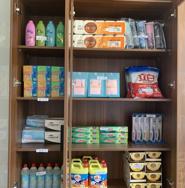 在十平米左右的“加油站”内,日常生活用品物资摆放有序,与正常商品不同的是,内部每种物品并不能用钱来购买,脱贫户只有通过参与指定项目获取积分,才可以在“加油站”里兑换相应数量的商品。由村专干主导管理,负责日常积分管理、物品兑换和登记,加油站物资台账的填写、记录等;定期对积分情況和物品出入库情况登记检查,检查物资质量,确保物品安全。