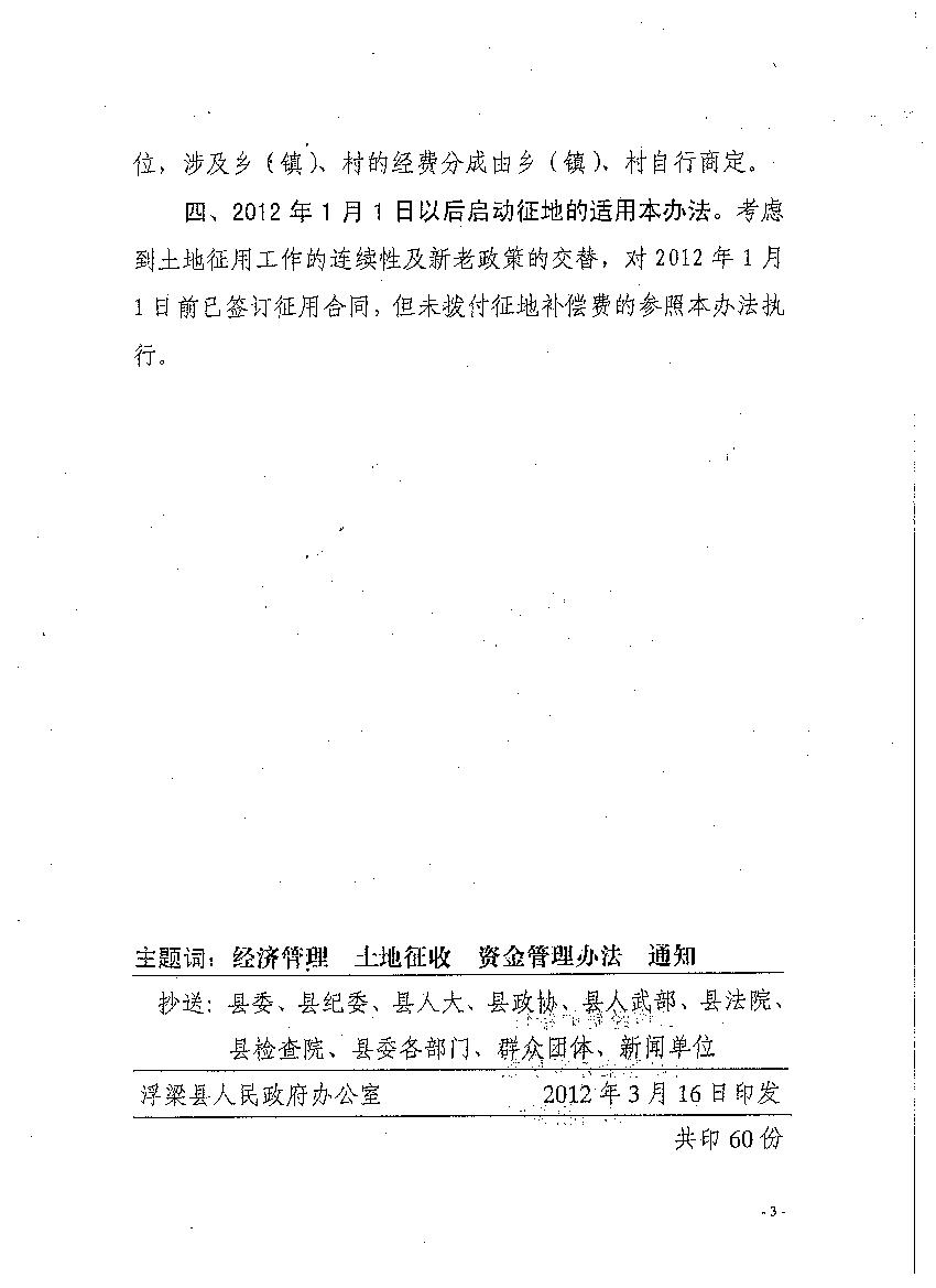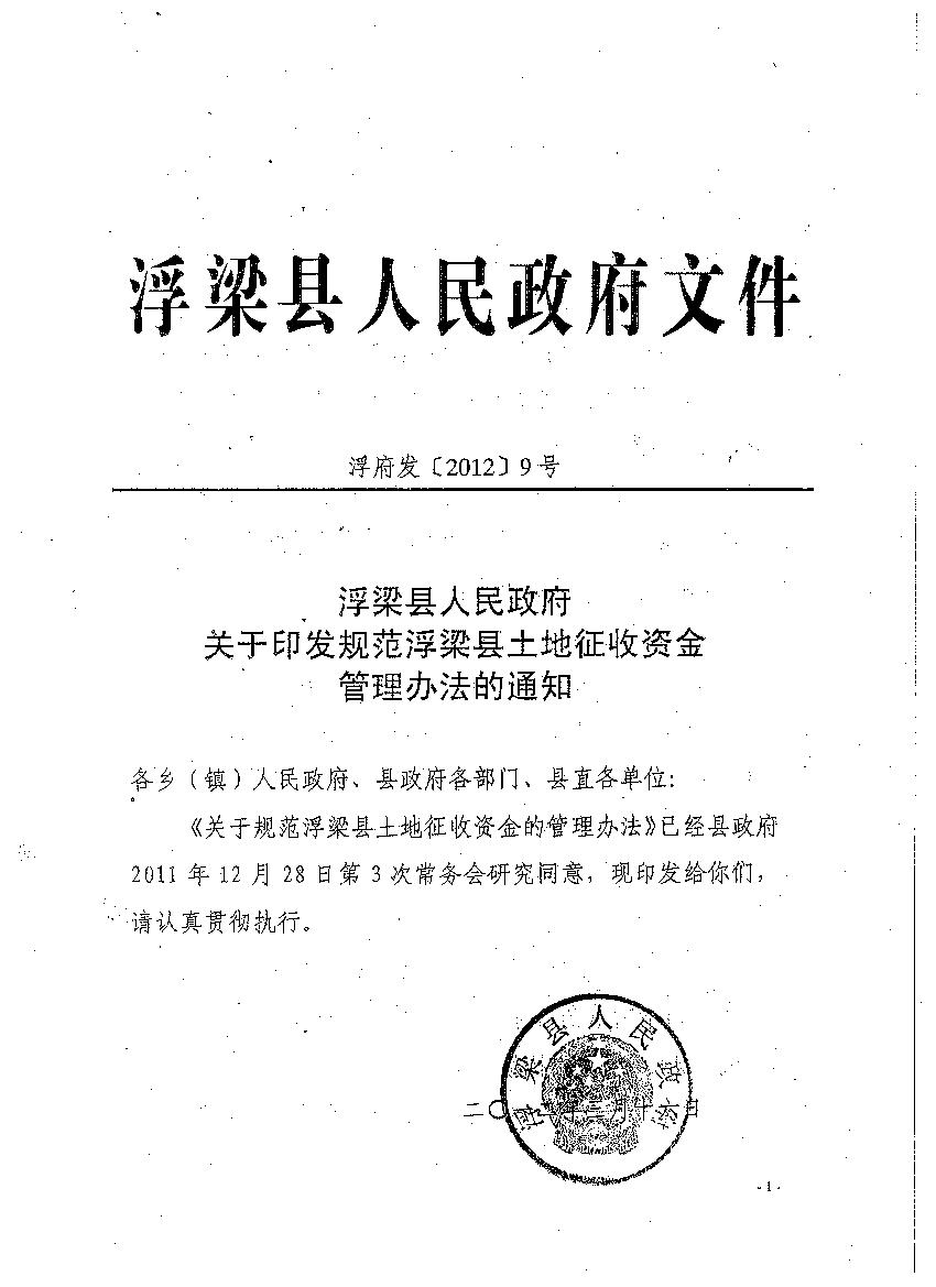 浮梁县人民政府关于印发规范浮梁县土地征收资金管理办法的通知